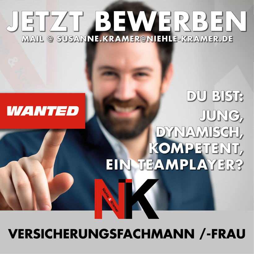 Bewerbung an: Susanne.kramer@niehle-kramer.de